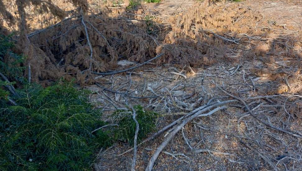 Mal sahiplerinin onayı olmadan 50 civarında kurumuş narenciye ağacı yanında tarlanın sınır boyundaki 30’u aşkın yemyeşil neredeyse yaşları asırlık olan selvi ağaçları da katledildi.