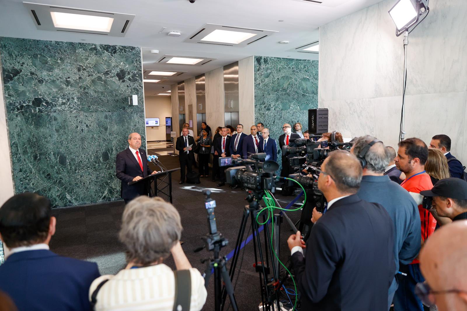 Cumhurbaşkanı Ersin Tatar, Birleşmiş Milletler (BM) Genel Sekreteri Antonio Guterres’in çağrısıyla New York’ta gerçekleştirilen Kıbrıs konulu genişletilmiş 5+1 formatındaki gayriresmî toplantının ardından önemli açıklamalarda bulundu.